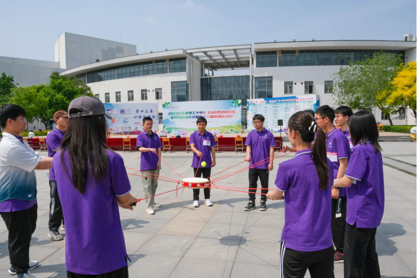 启动仪式后,天津大学吴凤伟老师带领各学院学生代表开展心理健康运动会项目--百人同心鼓,形式新颖、内容精彩。“快乐同心鼓”“挑战NO.1”“进击毛毛虫”“勇士挑战赛”等比赛项目相继开展,释放了同学们的心理压力,培养了团结协作、坚韧不拔的积极心理品质。