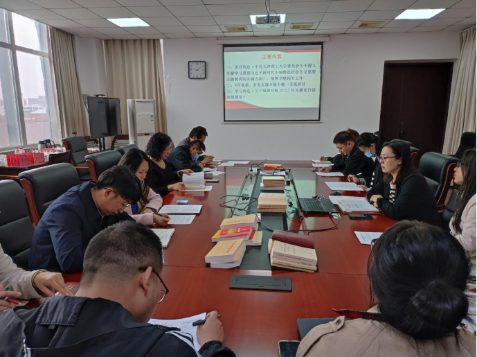 学院党委召开党支部书记例会,部署学院开展学习贯彻习近平新时代中国特色社会主义思想主题教育的具体安排,要求全体党支部要深入学习领会习近平总书记在学习贯彻习近平新时代中国特色社会主义思想主题教育工作会议上的重要讲话精神,学思践悟,及时传达落实主题教育各项工作要求。
