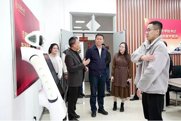 座谈会后,教育部语信司一行参观了聋人工学院学生艺术作品展及无障碍智能科技研发中心。
