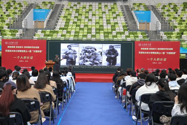 思政大课堂邀请了中国著名摄影家、长征文化研学者、长征纪录片导演、天津滨海汽车工程职业学院思政课教师左力,结合党的二十大报告和长征精神,为全市大中小学3000余师生讲了“走好新时代长征路”主题故事,通过沉浸式互动式教学引导广大师生弘扬伟大长征精神,汲取奋斗前行力量。