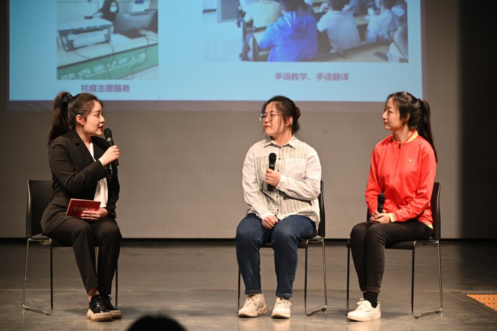 诗会围绕“青春担当”“青春底色”“青春征途”三大篇章,将六个青春志愿故事层层递进、精彩呈现。开场微电影《雷锋是怎样炼成的?》、节目《无名之辈》拉开了诗会序幕。学校青年志愿者标兵尚劭君回忆他与无数米兰青年一起在校园参加志愿服务的点点滴滴;退役大学生士兵王鹏分享了他奔赴抗洪抢险救灾一线淬炼成长的军旅生活;全国青马学员赵思瑶结合大型赛事志愿服务经历、基层实践锻炼等,与大家共话“青马”担当;中国大学生自强之星孙悦向大家分享了她与团队在第六届中国青年志愿服务项目大赛中勇夺银奖的不凡故事;西部计划全国优秀志愿者张清晨通过视频连线与大家隔空对话,讲述他在西部志愿服务的故事;天津大学研支团新疆分队长胡玥分享了她在西部支教的日日夜夜和感人故事,与观众们共同探讨情怀与热爱。