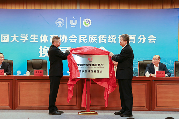 会议宣读了《中国大学生体育协会关于民族传统体育分会换届的决定》。张爱龙代表中国大学生体育协会向学校授牌。