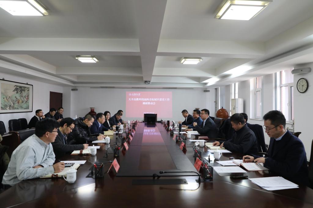 双方在会上就产业技术研发中心的支持政策与建设模式等问题进行深入交流。学校将按照天津市 “一核两翼”建设部署,积极打造科技创新策源地,培育经济发展新动能,为促进天津市及西青区经济社会发展作出积极贡献。