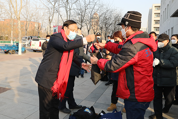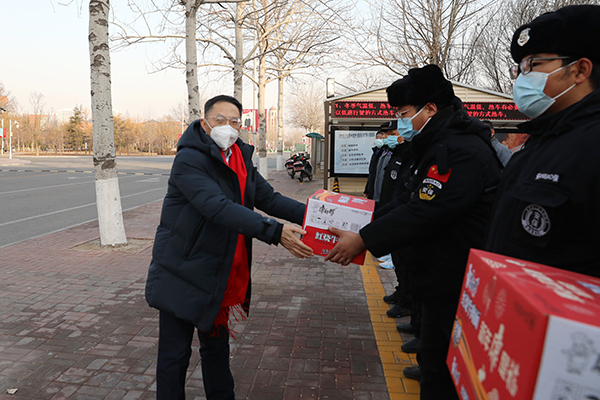 1月21日,农历大年三十上午,校党委书记刘东志,党委副书记、校长练继建,党委副书记杜长有,党委常委、副校长张继东看望慰问春节期间仍然坚守在工作一线的干部职工,代表学校为他们送上新年问候和新春的祝福。党委办公室、党委学生工作部、党委安全工作部、网络安全和信息化办公室、后勤管理处等部门负责人陪同。