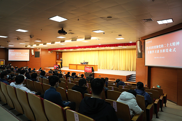 校党委书记刘东志在读书班结业式上作了讲话,肯定了此次读书班取得的成果,同时结合学校工作实际就学习宣传贯彻落实党的二十大精神做了工作部署并提出明确要求,强调一是要持续用力、层层跟进,在坚定捍卫“两个确立”、坚决做到“两个维护”上狠下功夫。要把学习宣传贯彻党的二十大精神作为当前和今后一个时期的首要政治任务,坚持原原本本、原汁原味、逐字逐句研读党的二十大报告和党章,抓好全覆盖、全方位宣传宣讲,做到坚持不懈、学懂弄通做实。二是要扑下身子、狠抓落实,把党的二十大精神转化为担当实干的具体行动。要运用好“六个坚持”指导推动工作,把习近平新时代中国特色社会主义思想的世界观和方法论,真正转化为广大党员干部想为敢为、勤为善为的过硬素养和能力。坚持问题导向,以自我革命引领社会革命,充分发扬斗争精神,坚持刀刃向内,以踔厉奋发的姿态走好新时代赶考之路。同时要做好疫情防控工作,统筹发展和安全,抓好当前各项重点工作。三是要聚焦聚力、实干争先,加快推动学校综合实力和发展质量整体跃升。要深刻认识“教育、科技、人才是全面建设社会主义现代化国家的基础性、战略性支撑”的重大意义,自觉融入中国式现代化建设大局,做好建设教育强国、科技强国、人才强国的“答卷人”。要把学习宣传贯彻党的二十大精神落实到学校事业发展全过程、各方面,全面贯彻党的教育方针,落实立德树人根本任务,全面提高人才自主培养质量,更好践行为党育人、为国育才使命任务。