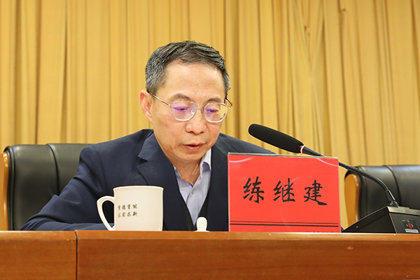 校党委副书记、校长练继建传达了党的二十大报告、十九届中央纪律检查委员会工作报告、《中国共产党章程(修正案)》、习近平总书记在参加广西代表团讨论时的重要讲话精神和习近平总书记在二十届中共中央政治局常委同中外记者见面会上的重要讲话精神。
