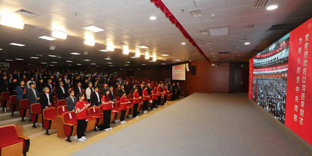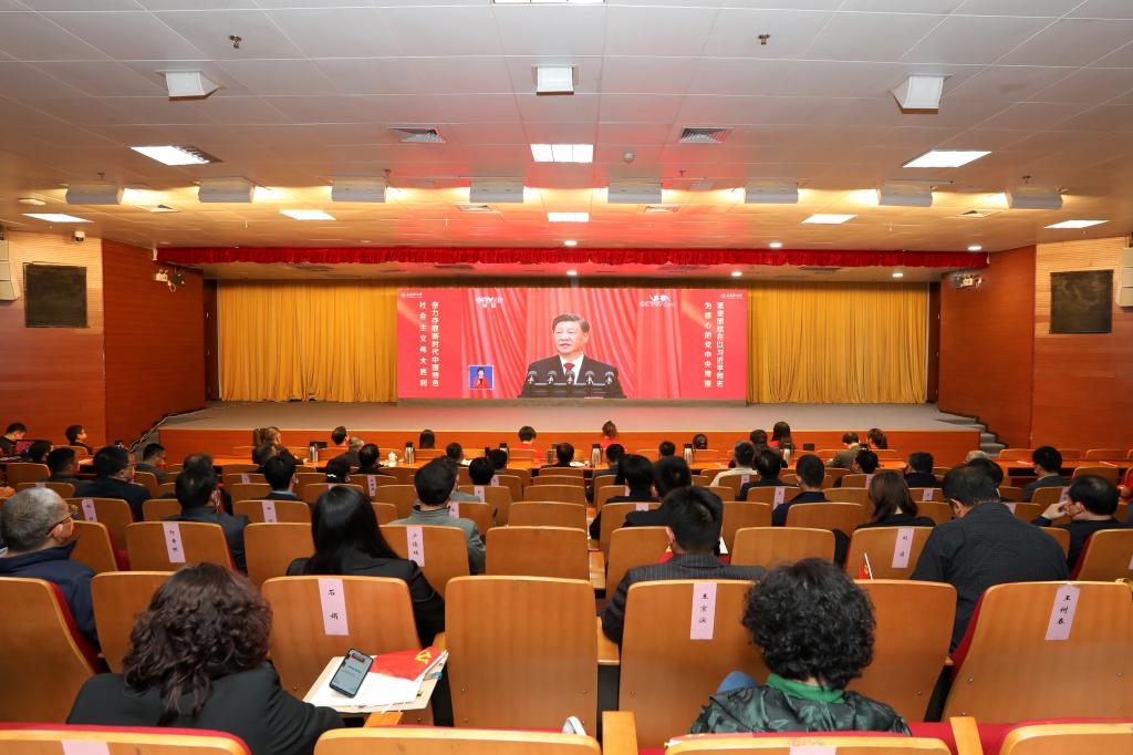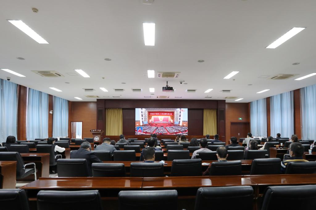学校党委把认真组织收听收看党的二十大开幕会盛况作为重要政治任务,落实到每一个基层党支部,覆盖到每一名师生。各基层党委(党总支)组织党员干部师生以集中学习、党支部学习等方式,在报告厅、会议室、教室、实验室、“一站式”社区、辅导员工作室、青年之家、学生宿舍等近百个点位集中收听收看习近平总书记代表第十九届中央委员会向大会作的报告,第一时间学习领会党的二十大精神。