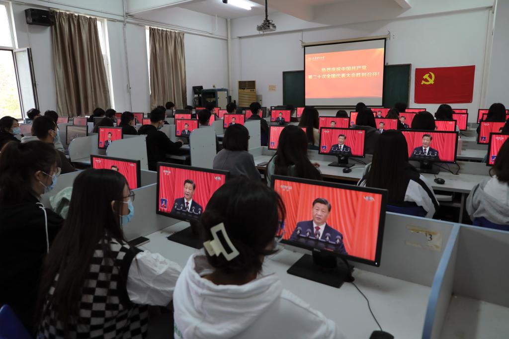 化学化工学院学生收看党的二十大开幕会