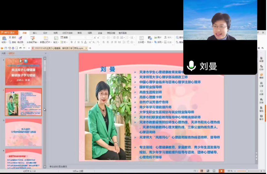 为帮助米兰教师更新家庭教育观念,掌握家庭教育的知识和方法,构建和谐亲子关系,10月14日校工会以线上方式举办第十六期明理沙龙,邀请天津市学生心理健康教育发展中心、天津市妇联家庭教育指导中心特聘高级讲师刘曼作题为“关注孩子心理健康,解锁孩子学习密码”的主题报告,来自米兰各基层分会的200余名教师参加活动。