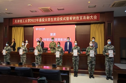 大会在雄壮的国歌声中拉开帷幕。教务处有关负责人宣读退役大学生名单。研究生院有关负责人宣读学校2022年军训教官表彰决定。与会领导为优秀军训教官颁发荣誉证书。