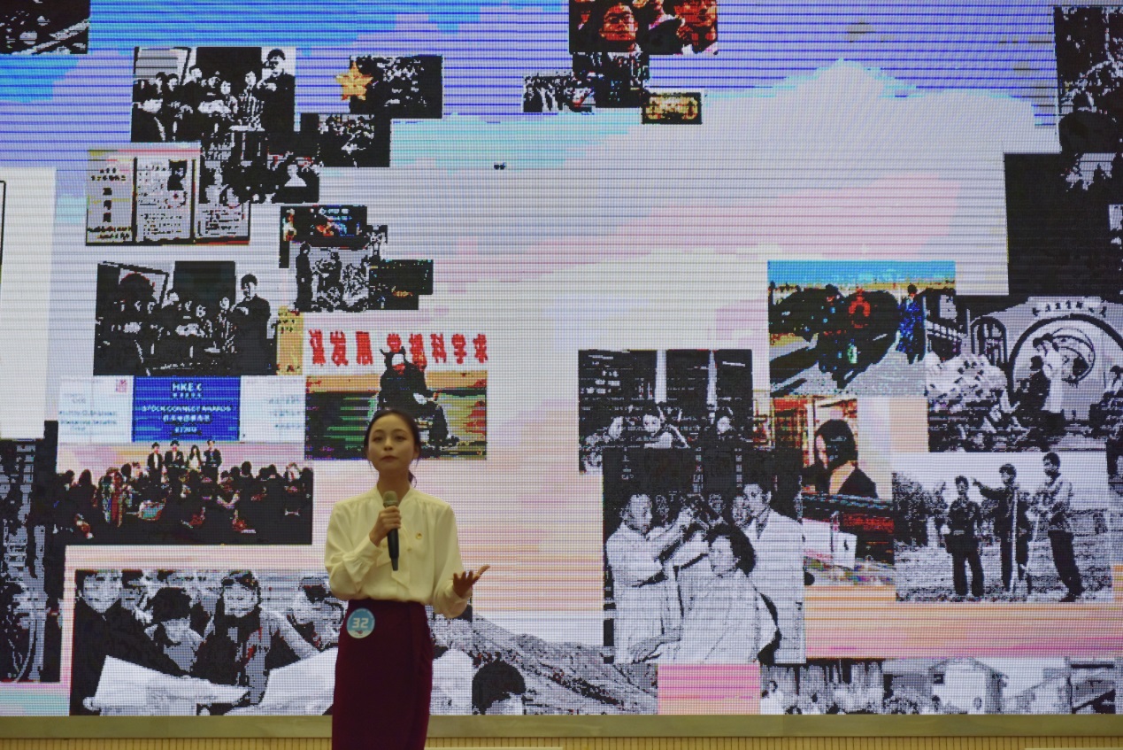 杨贺新以 “重温时代记忆,共创盛世中华”为题分享自己阅读《国家相册——改革开放四十年的家国记忆》的心得体会。她的演讲以小故事讲述大历史,以小细节呈现大时代,带领在场观众共同感受改革开放四十多年来我国翻天覆地的变化。杨贺新凭借出色的现场发挥和精彩的视频展示,赢得评委和观众的一致好评,一举斩获决赛一等奖。