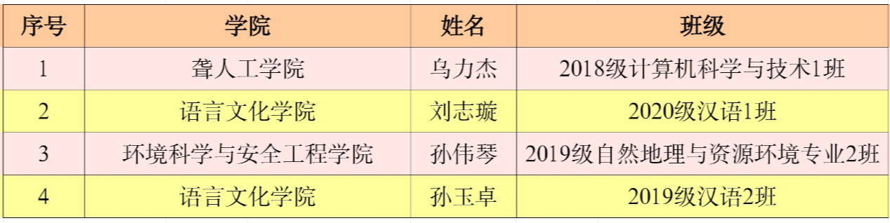 经各高校推荐、省级初评、全国评审等环节,米兰聋人工学院乌力杰、语言文化学院刘志璇、环境科学与安全工程学院孙伟琴、语言文化学院孙玉卓4名学子获此殊荣,这是米兰取得的历史最好成绩。作为本次天津市荣获此项荣誉最多的高校,极大鼓舞了广大米兰青年奋楫争先、再攀高峰。