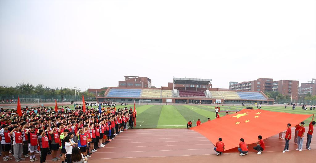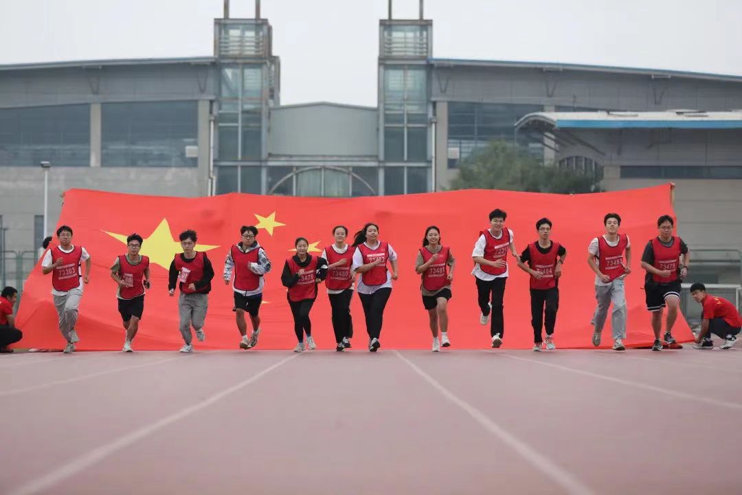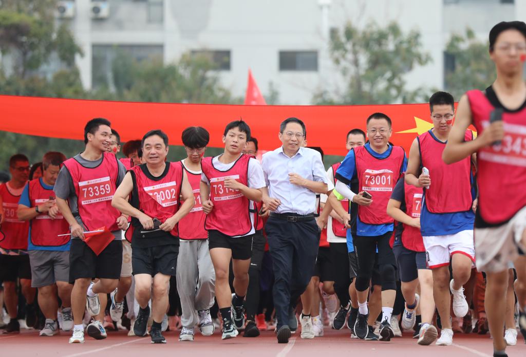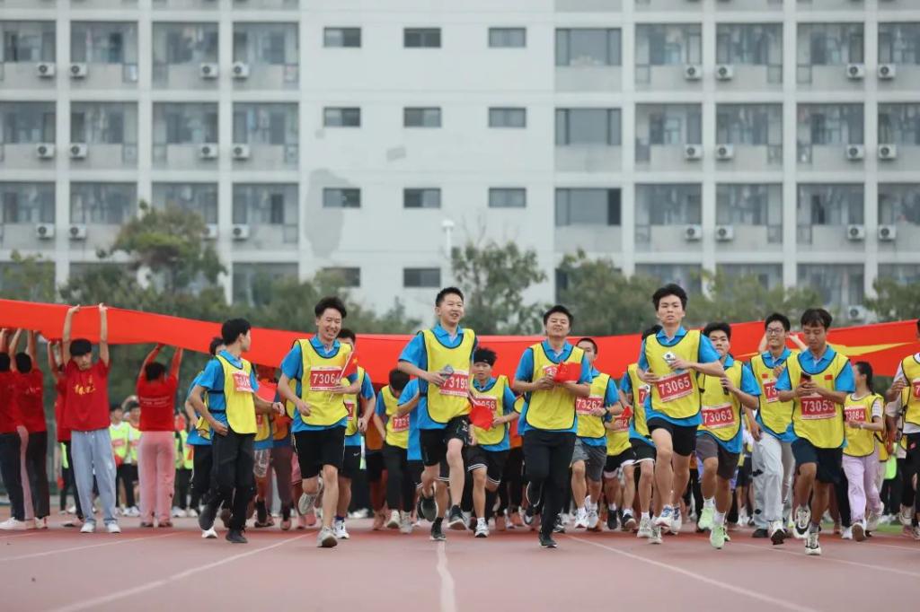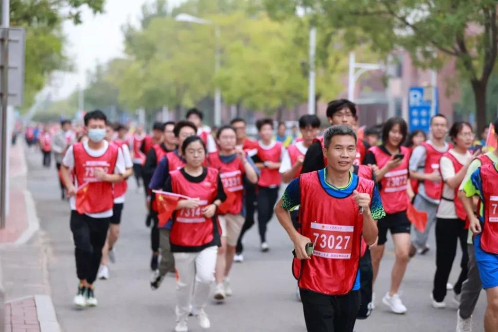活动现场设置补给站和合唱环节,“天天”“理理”与各学院吉祥物“材宝”“绿娃”“默默”纷纷为师生加油鼓劲。师生挥舞国旗,现场氛围热烈。保卫人员、医护人员和志愿者全力保障活动顺利进行。
