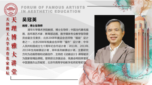 吴冠英教授讲座主题为《艺术视野下的人生和世界观》,他以热爱生活、饱含情感的日常创作及心得体会进行主题分享,通过“取舍”“发现”“自我”“快乐”“积累”五个角度讲述对艺术和人生关系的理解。