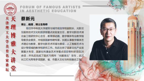 蔡新元教授讲座主题为《艺术史框架下的元宇宙艺术》,他从在艺术史框架下的元宇宙展开,阐述技术革命对数字艺术创作所带来的变革,以及信息革命引发的文化巨大转向的深入思考。