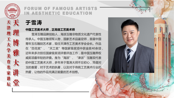 于雪涛大师讲座主题为《高端和田玉的鉴赏与收藏》,他从原料开采的艰辛与天然美玉的难得展开阐述,重点围绕和田玉雕的设计、制作、鉴赏和收藏进行讲解。