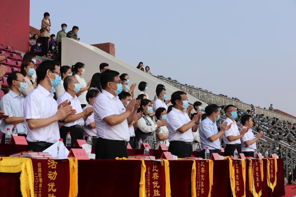副校长张继东宣读《军训表彰决定》,与会领导为优秀学生、优秀教师和先进集体颁奖。