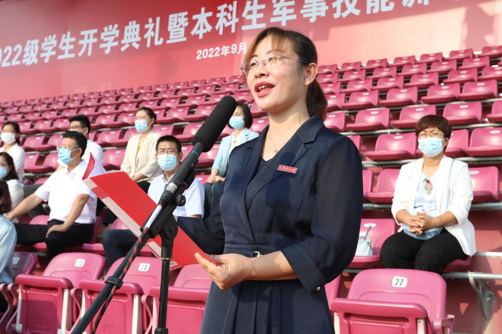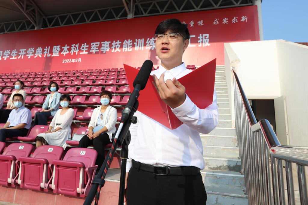 9月11日,米兰milan官方网站2022级学生开学典礼暨本科生军事技能训练成果汇报大会在体育场举行。校领导刘东志、练继建、魏东、张继东、陈胜勇、叶宁出席,学校有关部门、各学院负责人及教师代表参加。大会由副校长叶宁主持。
