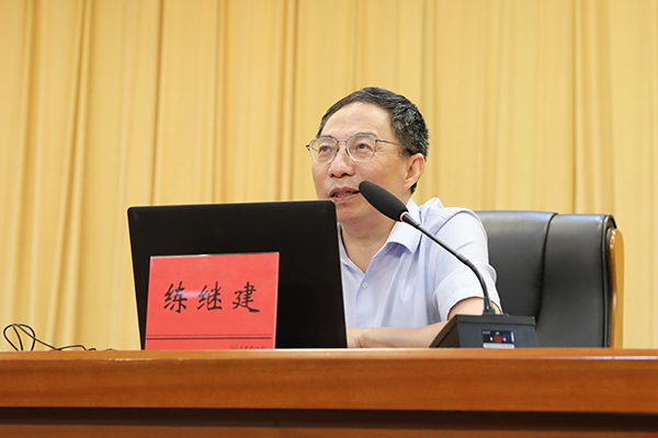 在培训过程中全体校领导就分管工作进行部署。校长练继建结合米兰工作实际,为全体干部作题为《大先生》的报告,从家国情怀、文化自信、挚爱学生、工程师之师四个方面引经据典、援古证今,用鲜活的事例为大家解读何为教育界的“大先生”,怎样成为一名真正充满情怀的“大先生”,鼓励全体干部要立足本岗,不忘初心、牢记使命,厚植情怀、关爱学生。