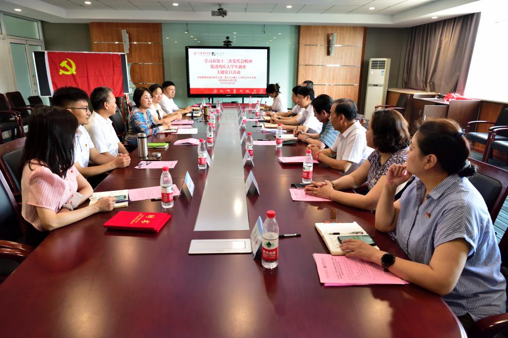 7月15日下午,聋人工学院综合党支部与市残联教育就业部党支部、津贸投协会党支部联合开展“学习市第十二次党代会精神 促进残疾大学生就业”主题党日活动,市残联党组成员、副理事长、一级巡视员李建存出席。校党委副书记郭滇华、副校长张继东会见了市残联和津贸投协会一行,就贯彻落实市第十二次党代会精神,凝聚政校企合力为高质量人才培养赋能进行了深入探讨。