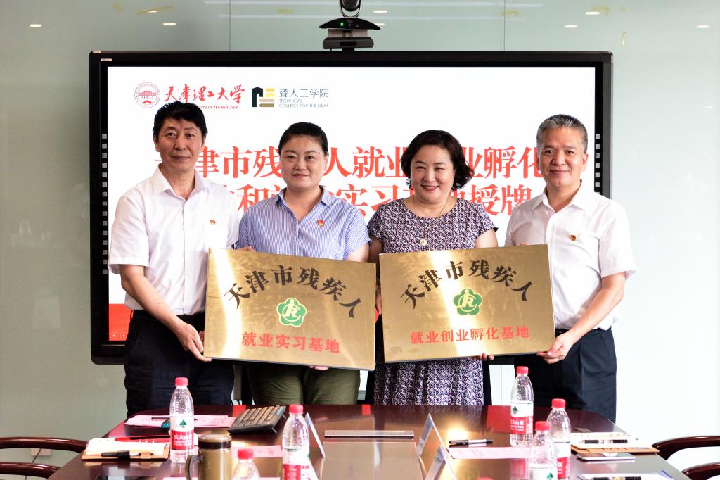 党日活动中,市残联为天津市残疾人就业创业孵化基地和就业实习基地授牌,津贸投协会向听障大学生提供了就业实习岗位,聋人工学院向就业创业导师颁发了聘书。