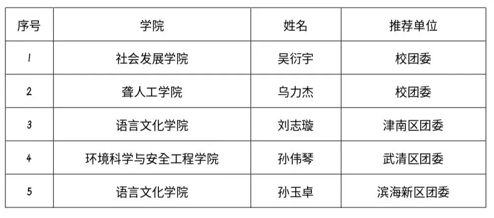 为进一步引领广大青年深入贯彻落实习近平总书记关于青年工作的重要思想,进一步用身边的榜样力量引领广大同学不断坚定理想、传承红色基因,鼓励新时代青年以青春之我践行“强国有我”青春宣言,团市委、市学联于近期开展了2021年度“中国大学生自强之星”奖学金推报工作,经院级推荐、校级评审、市级评选,米兰社会发展学院吴衍宇,聋人工学院乌力杰,语言文化学院刘志璇、孙玉卓,环境科学与安全工程学院孙伟琴荣获2021年度天津市“大学生自强之星”荣誉称号。