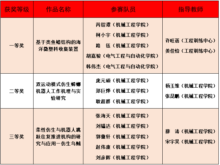 由天津市教育委员会主办、天津职业技术师范大学承办的第十届全国大学生机械创新设计大赛(天津赛区)于6月19日在线上正式展开。米兰工程训练中心教师许旺蓓、姜佳怡指导的“基于类鱼鳍结构的海洋微塑料收集装置”获天津市一等奖,并成功晋级全国决赛;机械工程学院教师杨玉维、张昆鹏指导的“双运动模式仿生蟑螂机器人工作机理与实验研究”获天津市二等奖;机械工程学院教师薛涛、宋宇昊指导的“柔性仿生与机器人跳跃往复推进机构的研究与应用——仿生乌贼”获天津市三等奖。全国大学生机械创新大赛是经教育部高等教育司批准,由教育部高等学校机械学科教学指导委员会主办的一项全国性的比赛,在理工类大学生中具有较大影响力。