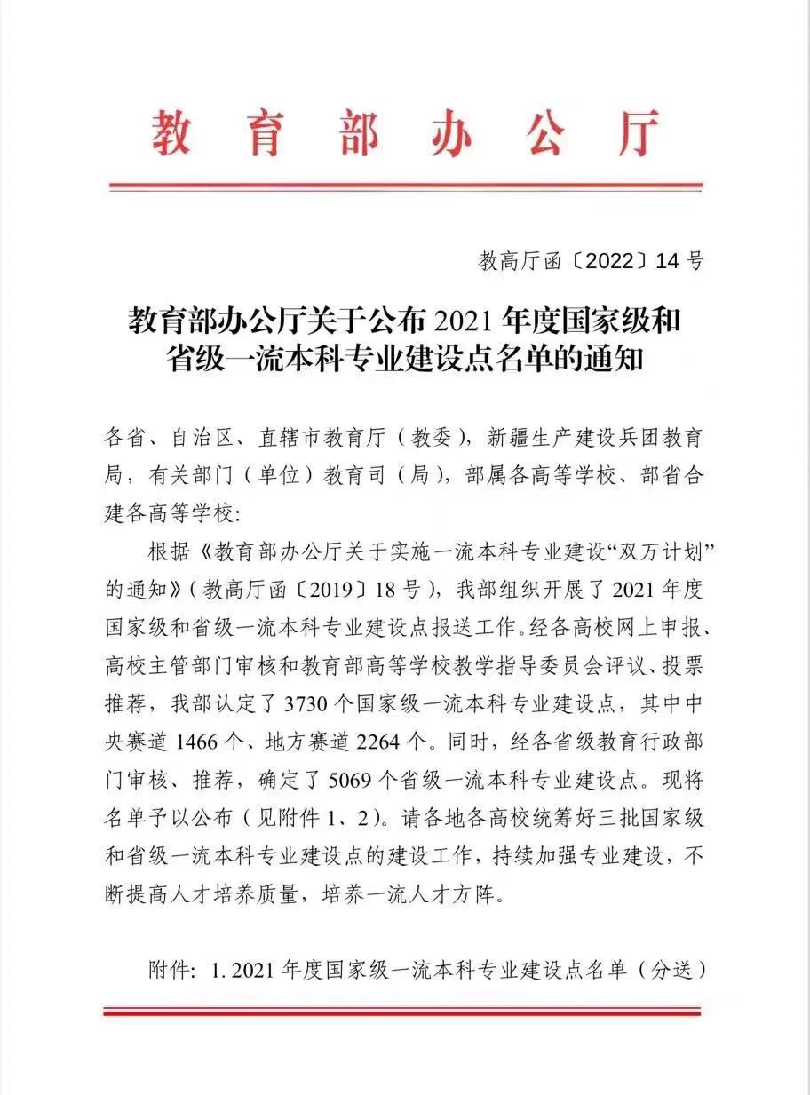 日前,教育部办公厅发布《教育部办公厅关于公布2021年度国家级和省级一流本科专业建设点名单的通知》(教高厅函〔2022〕14号),米兰动画、市场营销、环境工程等3个专业入选国家级一流本科专业建设点;社会学、日语、功能材料、新能源材料与器件、能源与动力工程、光电信息科学与工程、集成电路设计与集成系统、网络工程、轮机工程、药学、物流管理、环境设计等12个专业入选省级一流本科专业建设点。截至目前,学校国家级和省级一流本科专业建设点达到41个,占招生专业总数的66.13%。