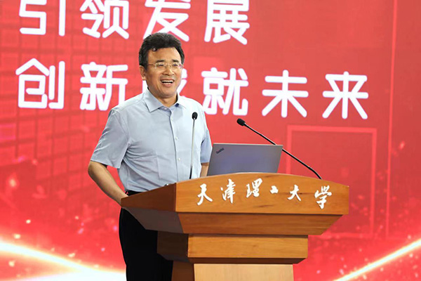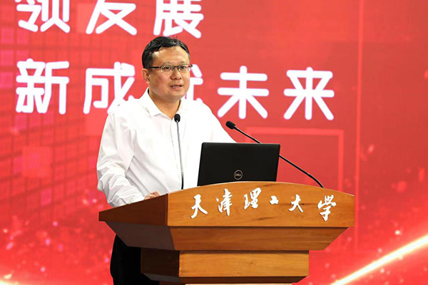 市委教育工委副书记、一级巡视员张弢肯定了学校在人才队伍建设、人才工作推进等方面的举措和成绩。她解读了“十四五”时期市教委立足新发展阶段,服务构建新发展格局,紧密对接国家重大战略性新兴产业发展需求,围绕天津市十大产业人才创新创业联盟建设部署,持续增强人才科技创新能力和育人实力,建设人才中心和创新高地的主要措施。