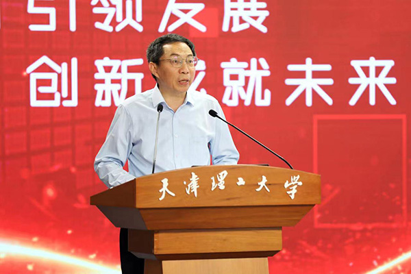 市人社局党组成员、副局长,市委组织部人才办副主任郑巴音在讲话中对学校人才培养和人才工作给予充分肯定,对学校推动天津市半导体集成电路人才创新创业联盟取得实效表示赞赏。他表示,天津市近年来在战略新兴产业发展领域展现强劲的发展势头,率先以十大“人才联盟”推动创新联合体建设,首创人才工作矩阵,创新服务保障措施,助力人才在津发展。此外,他还解读了天津市“海河英才”行动计划重点人才支持项目,介绍围绕天津市十大产业人才创新创业发展规划重构人才生态的人才引育政策。