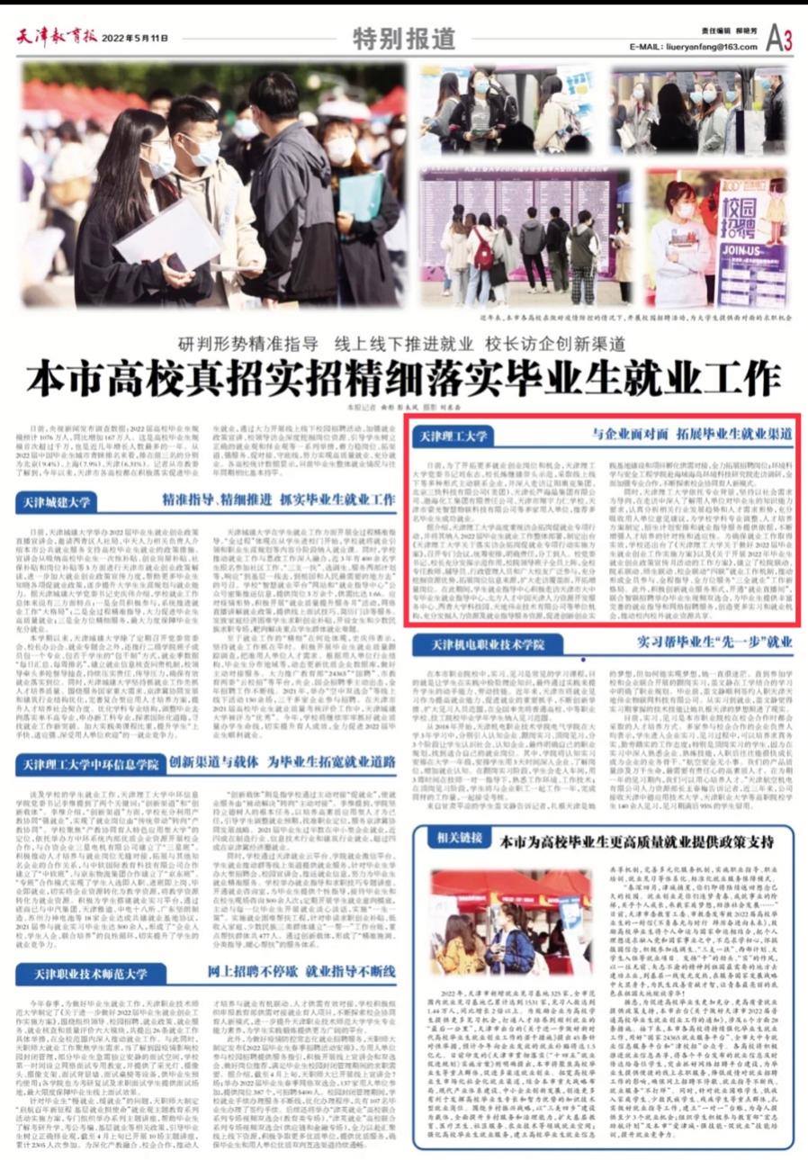 自2022年4月专项行动开展以来,学校累计走访企业110余家,新开拓就业岗位1746个,达成深度合作意向或签订战略协议百余项,解决重点群体学生就业875人,与企业面对面拓宽毕业生就业渠道的举措成效得到《天津教育报》关注报道。同时,学校创新就业服务形式,依托“就业直播间”“校园职通车”“生涯咨询工作室”“就业创业体验馆”等载体,积极为毕业生提供丰富完善的就业指导和网络招聘服务。