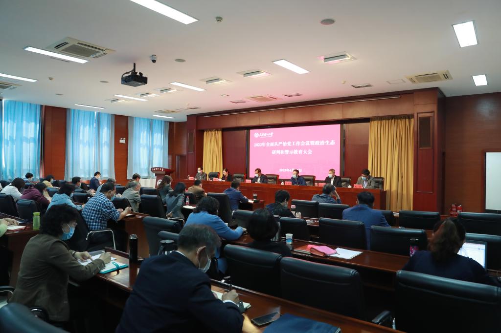 校党委副书记、校长练继建总结了2021年学校全面从严治工作取得的成果和经验,并围绕强化政治建设、加强忠诚履职担当、系统深化思政改革创新、选优建强领导班子和干部队伍、坚持不懈纵深推进全面从严治党等六大方面,对2022年全面从严治党工作进行部署,强调全校各级党组织和领导干部要铸牢政治忠诚,强化政治引领,加强党对学校工作的全面领导,发扬自我革命精神,深入推进全面从严治党,推进党的建设与中心工作深度融合,以高质量党建引领学校事业高质量发展。