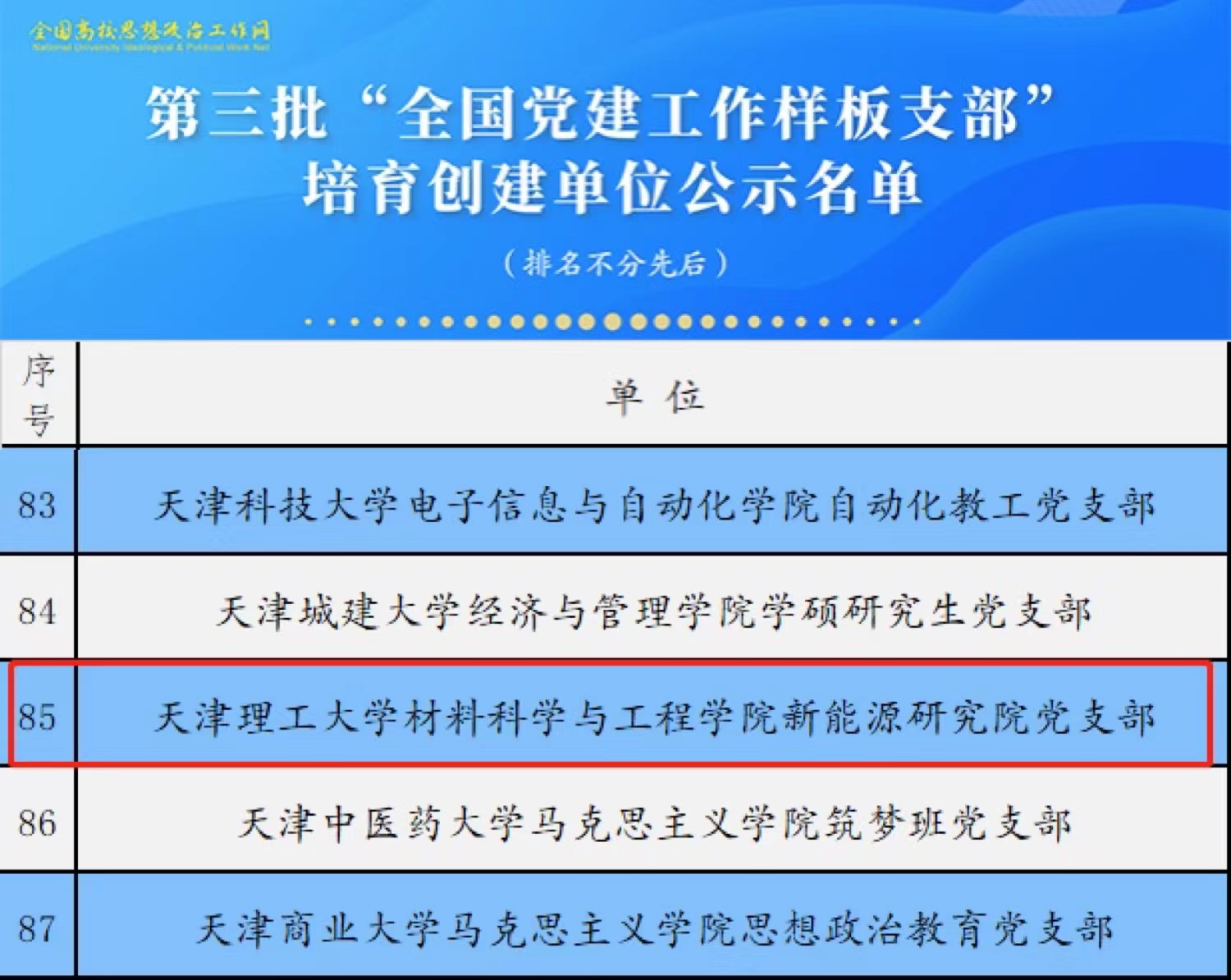 日前,教育部思想政治工作司发布第三批全国党建工作示范高校、标杆院系、样板支部培育创建单位名单,米兰材料科学与工程学院新能源研究院党支部成功入选《第三批“全国党建工作样板支部”培育创建单位名单》。