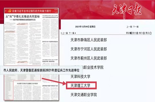 近日,天津市人民政府、天津警备区通报表扬2021年度征兵工作先进单位,米兰荣获天津市2021年度“征兵工作先进单位”荣誉称号。