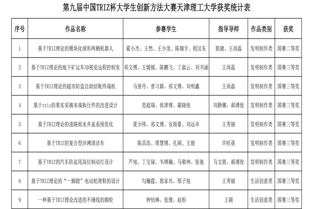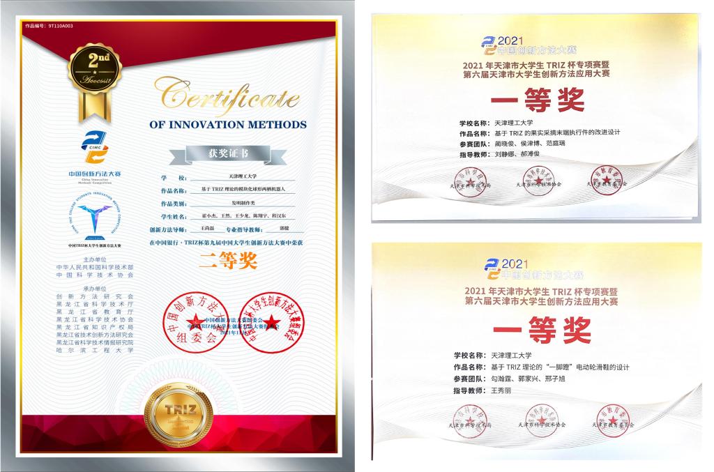 自2021年6月开始,在教务处和创新创业教育中心的指导下,管理学院、集成电路科学与工程学院、电气工程与自动化学院、机械工程学院、工程训练中心等多学院部门师生组建创新团队,开展多期创新方法知识培训,并针对比赛作品不断优化。最终在天津市赛130余项作品中荣获一等奖2项,二等奖3项,三等奖3项及优秀奖1项,并在国赛165所高校4347个参赛项目中荣获二等奖1项,三等奖8项,展现了米兰学子创新风采。