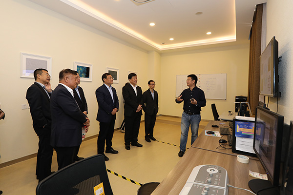 朱建民董事长一行先后赴化学化工学院、生命健康智能检测研究院、功能晶体研究院、新能源材料与低碳技术研究院等单位参观成果展、实验室等,并听取情况介绍,进一步了解学校相关学科建设、科研和人才培养工作。