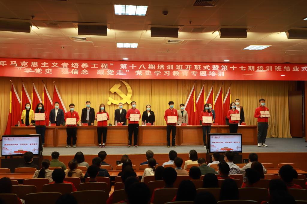 仪式上,为学员颁发结业证书,为优秀学员颁发荣誉证书,为第十八期培训班班主任颁发聘书。