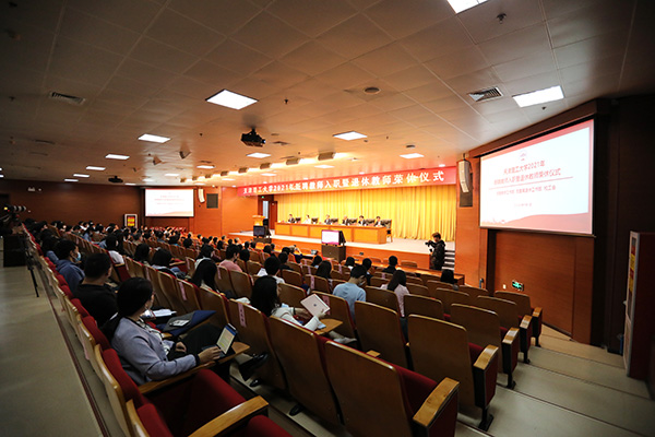 仪式结束后,全体新聘教师面向国旗、校旗进行入职宣誓。
