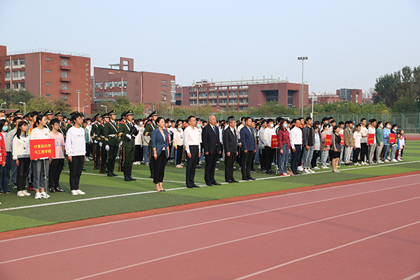 10月1日,学校在体育场举行庄严的升国旗仪式,庆祝中华人民共和国成立72周年。校领导杨庆新、杜长有、张继东出席,校党委学工部、校团委相关负责同志、各学院师生代表1400余人参加升国旗仪式。