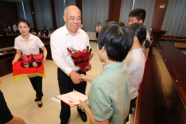 校党委书记刘东志、校长杨庆新为从教30年教职工颁发证书,送上鲜花,并号召全校教职工坚守立德树人初心、勇担教书育人使命,深扎工作岗位,开拓进取,担当作为,在新的征程上,书写学校“十四五”时期事业高质量发展新篇章。
