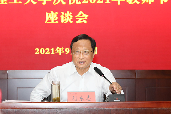 校党委书记刘东志代表学校向全校教职工致以节日问候和崇高敬意。他指出,2021年是中国共产党成立100周年,是“十四五”开局之年,是全面建设社会主义现代化国家新征程的起步之年,也是落实学校第二次党代会精神的关键之年,全校广大教职工要以德能为本、实新为范的敬业情怀,在落实立德树人根本任务中展现新作为、创造新业绩,学校教育事业实现新发展、取得新成效。围绕“赓续百年初心,担当育人使命”的主题,刘东志向广大教职工提出三点要求,一是坚定教育初心,做红色基因的传承人,以党史学习教育为主线,强化“四史”学习教育,更加忠诚于人民、忠诚于党的教育事业,教育引导学生热爱党、热爱祖国,听党话、感党恩、跟党走,让育人初心薪火相传,把时代使命勇担在肩;二是坚持立德树人,做培养时代新人的大先生,始终牢记立德树人根本任务,传道、授业、解惑,塑造学生品格、品行、品味,把培养堪当民族复兴大任的时代新人始终铭记于心,甘当学生发展的铺路石;三是坚持守正创新,推进学校教育教学改革,在教书育人的生动实践中持续发力,带头学习先进的教育理念,掌握先进的教学方法,探索适合理工大学的教育教学模式,特别是在产教融合上有所建树,勇做学校教育教学改革的先锋。