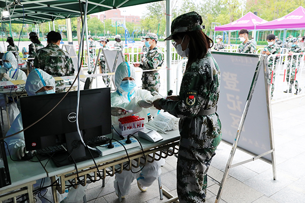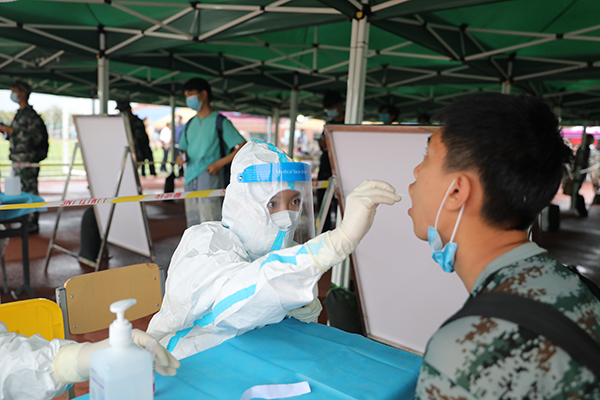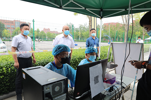 当天上午8时,学校设置的2个标准化采样场的18条登记采样通道同时开展检测筛查。