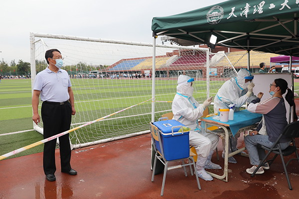 据了解,此次大规模人群核酸检测,是落实国务院和天津市疫情防控会议精神,在属地西青区疫情防控指挥部的统一部署和支持指导下开展的一次预防性筛查。为确保此次核酸检测顺利开展,学校党委高度重视,提早制定工作方案,对全体师生及外包人员登记造册,建立信息库,保证所有人员应检尽检,并提前完成各点位的桌椅、帐篷、一米线、水电等物资准备工作,150余名志愿者在现场进行引导服务。
