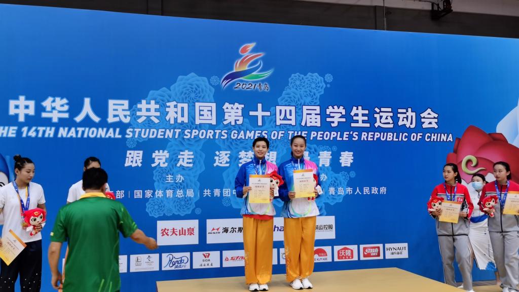 此次比赛是由教育部、国家体育总局、共青团中央主办,山东省教育厅、青岛市人民政府承办,是学生类体育比赛中规格最高的赛事。由于疫情防控需要,本次赛会对所有参赛人员实行封闭管理,队员们严格遵守大会各项规章制度,比赛间隙苦练动作,受到了组委会的高度肯定,并获得体育道德风尚队的荣誉称号。