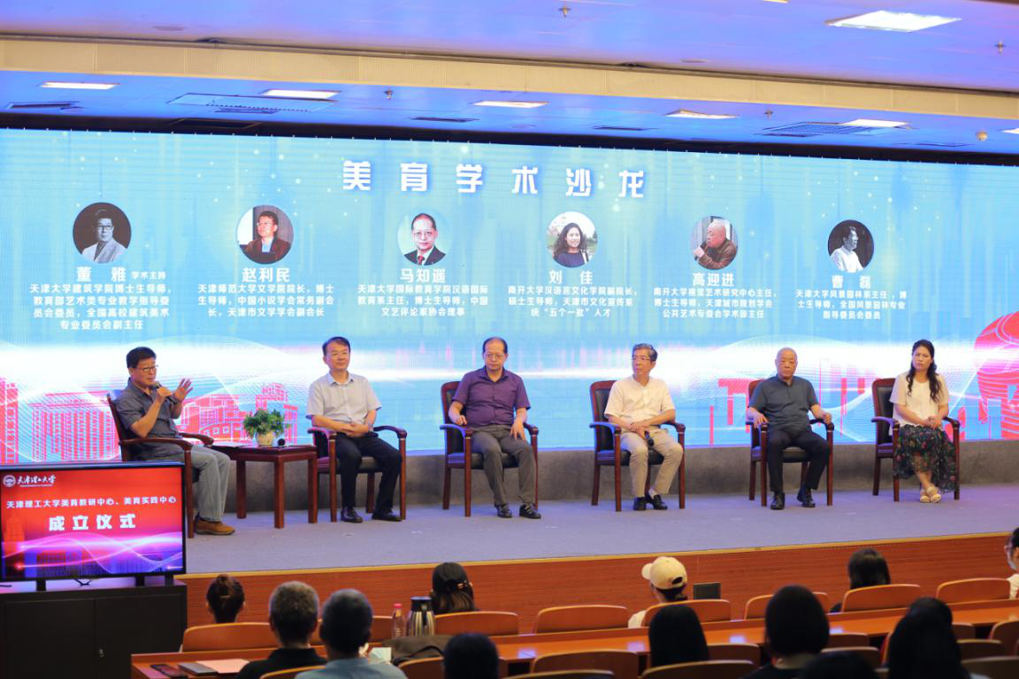 在当天举办的美育学术沙龙上,董雅、赵利民、马知遥、刘佳、高迎进、曹磊等教授分别从美育教育的意义和价值、非物质文化遗产传承教育的必要性、南开大学京剧传承基地建设成果、艺术创作与美育教学的实践性、运河遗产保护和运河文化公园建设等方面进行交流。专家们从各自的研究领域对高校美育教育和美育建设提出了宝贵建议。