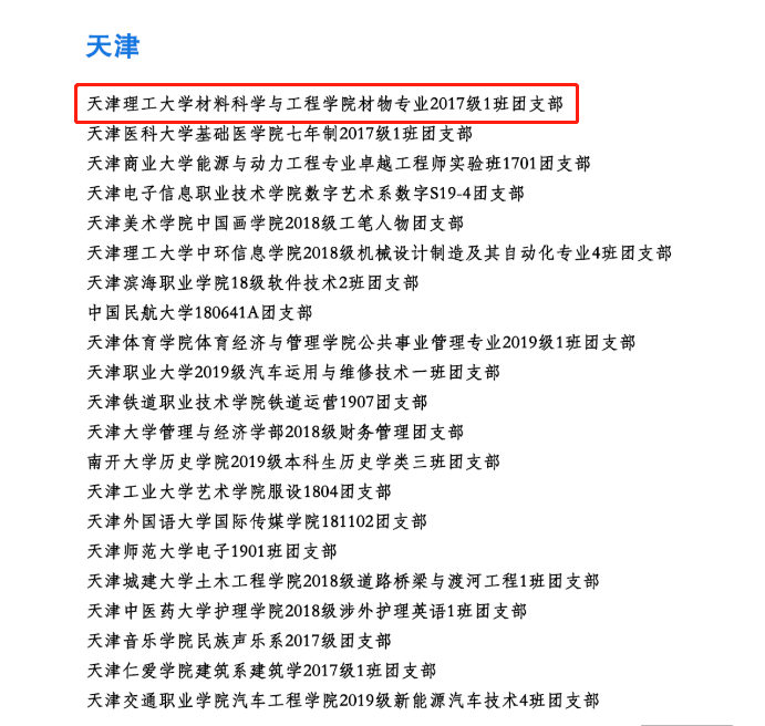 2017级材料物理1班团支部以“团结向上,积极奋进,突出特色,争创一流”为目标,在思想教育中坚定信仰,在互助服务中磨砺意志,在学习实践中收获成长,在青春相伴中一路同行。支部全年开展主题团课、青年宣讲等活动20余次,支部成员累计参与志愿服务60余人次,累计时长400小时。举办“以爱为名,同心战疫”、“讲好青春故事”、“教授伴我成长”、“新发展,新青年”、“大学习大走访大调研”等特色品牌活动,多个活动受到“津云”、“天津教育报”等媒体的报道。团支部获得天津市“先进学生集体”、天津市“五四红旗团支部”等荣誉称号。支部现有11名中共党员。支部成员学习成绩连续四年蝉联年级第一, 50余人次获得各级各类奖学金,获得“天津市优秀学生”、“天津市优秀学生干部”等市校级荣誉60余项,17名同学毕业后继续深造。