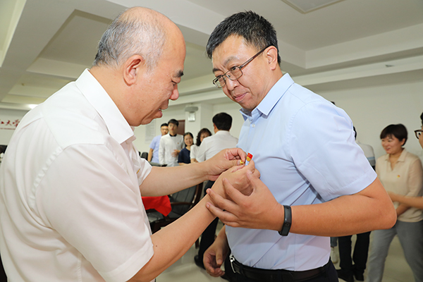 会后,校领导为参会师生佩戴了中国共产党成立100周年纪念徽章。