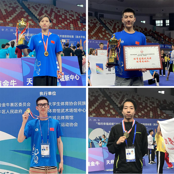 在6月25日至28日举行的“相约幸福成都” 2021年中国大学生武术套路锦标赛中,米兰12名队员和2名教练组成代表队,共斩获金牌16枚、银牌7枚、铜牌3枚,并获得男子高水平组团体冠军和“体育道德风尚奖优秀运动队”称号。其中,管理学院17级学生金哲典与曹瑞梅分别获得了各自参赛项目的大满贯,其他队员也均有不俗的发挥,圆满地完成了比赛任务,展现出了米兰学子力争上游、顽强拼搏的优良作风,发扬了“重德重能,求实求新”的校训精神。