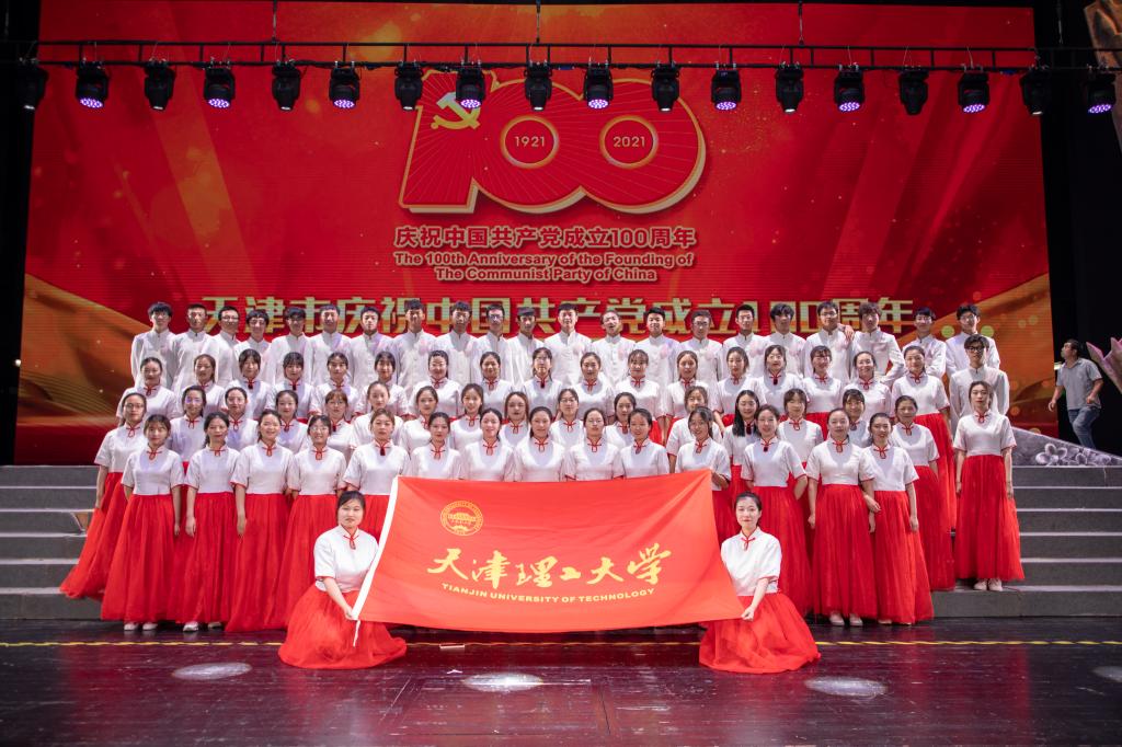 演出共分为序曲,浴血奋斗开天辟地、艰苦奋斗改天换地、拼搏奋斗翻天覆地、筑梦奋进伟大复兴四个篇章、尾声等几部分,合唱团学生在第三篇章交响合唱《在希望的田野上》《春天的故事》,在第四篇章参演歌舞《壮丽航程》,并在尾声部分与85岁高龄的著名艺术家于淑珍共同唱响《党啊!亲爱的妈妈》,抒发出对党的深深眷恋,《百年恰是风华正茂》的壮美乐章唱响了海河儿女忠心向党的无限真情。最后,全场观众起立,共同高歌《没有共产党就没有新中国》,将演出氛围推向高潮。