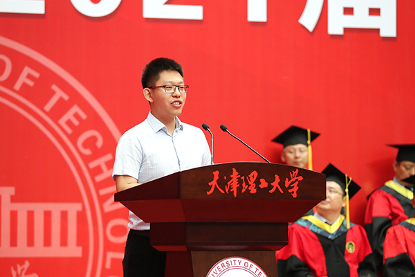 校友代表、天津康护养老产业发展有限公司董事长、2011届工商管理专业毕业生刘峰在毕业典礼上分享了工作感悟,勉励毕业生们要有梦想、坚持梦想,选择合理的赛道,充分运用在母校获得的一切知识与能力,勇立潮头,敢于担当,开创出属于自己的人生与事业。